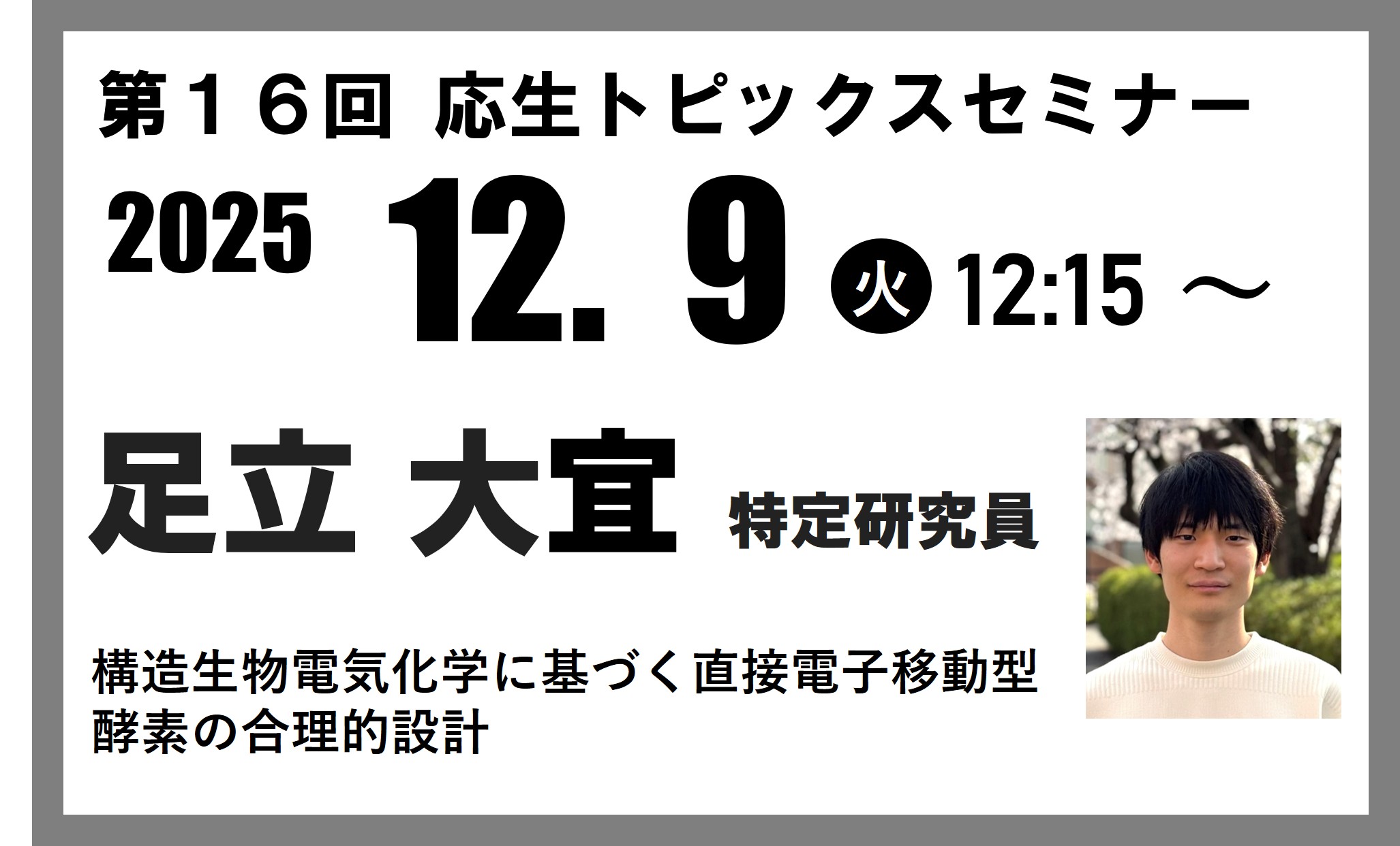 第16回目は生体機能化学分野の足立大宜 博士にご講演いただきます。