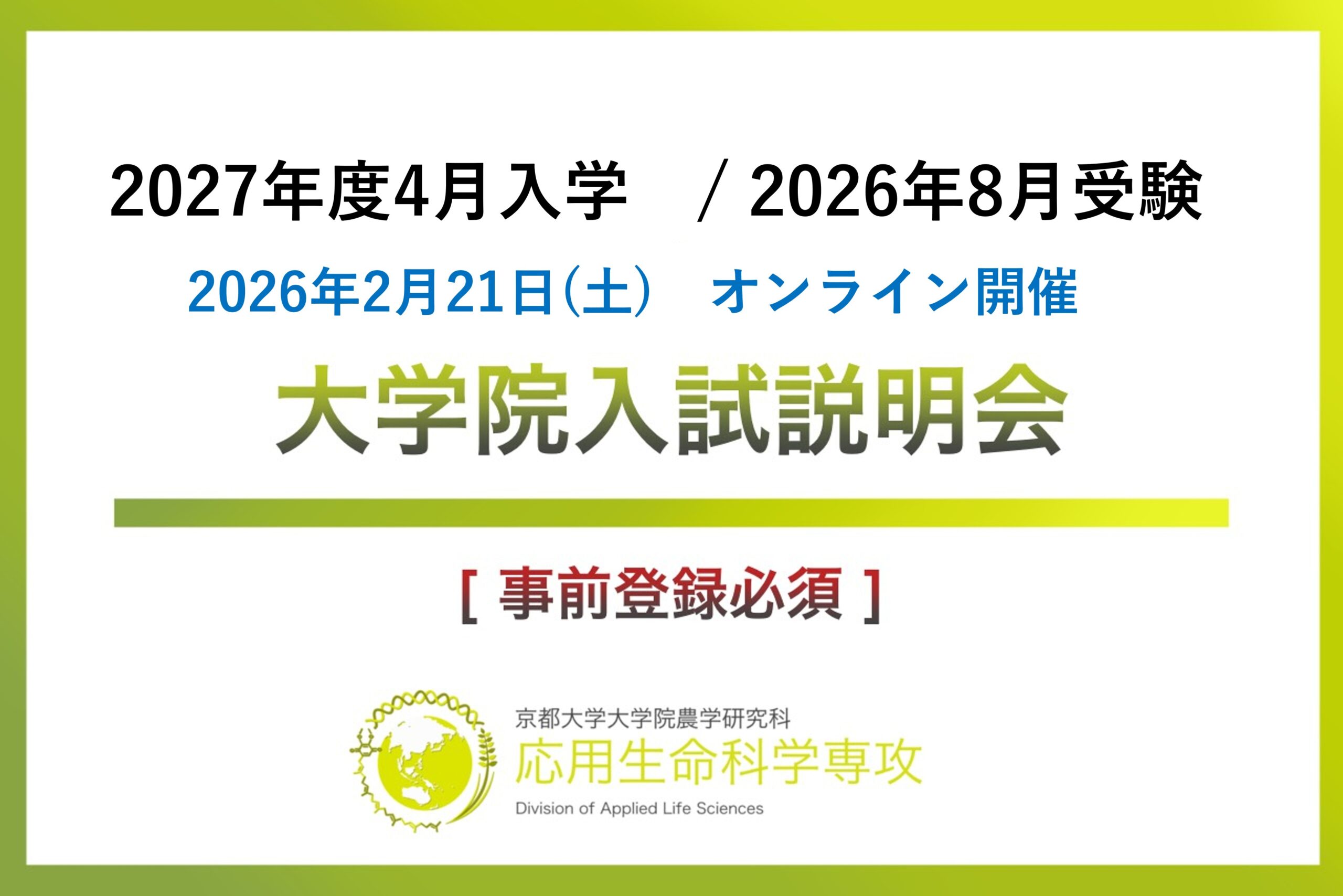 2027 年度⼤学院⼊試(2026 年 8 ⽉受験, 2027 年 4 ⽉⼊学)説明会